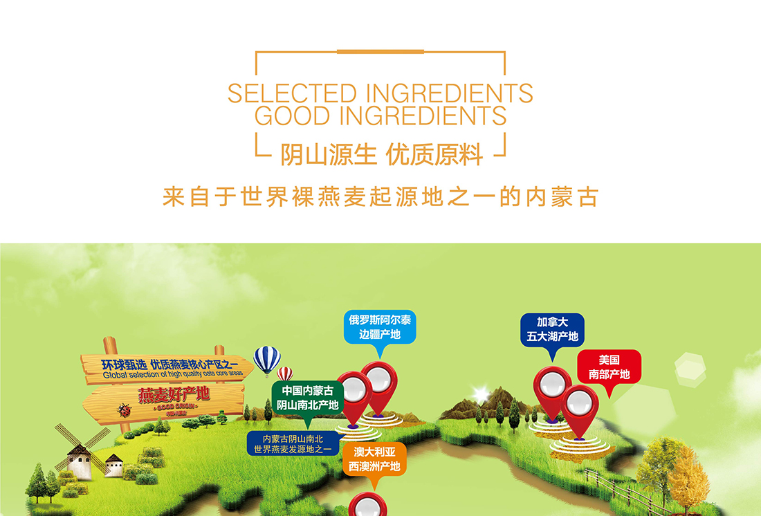 內(nèi)蒙古,世界裸燕麥起源地之一;陰山源生燕麥在此初生滿足生長(zhǎng)規(guī)律一切所需,高寒、高海拔、日照充足;遵循自然法則,靠天滋養(yǎng),自然生長(zhǎng);