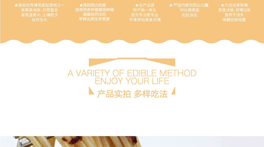 多樣吃法:涼拌右面面條、莜面栲栳栳、炒莜面魚(yú)魚(yú)、莜面餃子等