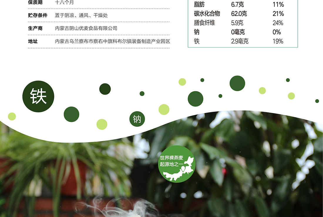 內(nèi)蒙古,世界裸燕麥起源地之一;陰山源生燕麥在初出生滿足生長規(guī)律一切所需,高寒、高海拔、日照充足;遵循自然法則,靠天滋養(yǎng),自然生長;