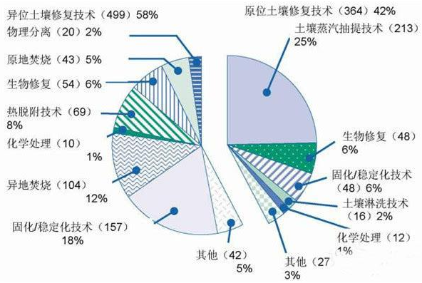 美國超基金場地修復(fù)項(xiàng)目技術(shù)使用分布圖