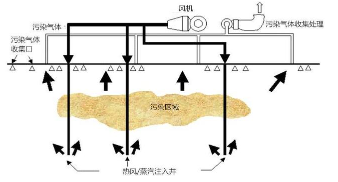 1、物理修復(fù)技術(shù)。物理修復(fù)主要針對有機(jī)污染物,修復(fù)技術(shù)包括蒸汽浸提、熱脫附、微波加熱等,目前已有苯系物、多環(huán)芳烴、多氯聯(lián)苯以及二噁英等的土壤修復(fù)的工程應(yīng)用。蒸汽浸提技術(shù)可以進(jìn)行原位或異位修復(fù),是通過降低土壤孔隙的蒸汽壓,將土壤中的污染物以蒸汽形式去除。適用于高揮發(fā)性化學(xué)污染土壤的修復(fù),如汽油、苯和四氯乙烯等。具有可操作性強(qiáng),設(shè)備簡單,容易安裝,對土壤結(jié)構(gòu)破壞小,處理周期6~24個(gè)月。但只能處理不飽和的土壤,對飽和土壤和地下水的處理還需要其他技術(shù)。熱脫附修復(fù)技術(shù)指利用高溫所產(chǎn)生的一些物理和化學(xué)作用(揮發(fā)、燃燒、熱解)去除或破壞土壤中有毒物質(zhì)的過程。一般用于處理有機(jī)污染的土壤(VOCs、SVOCs、農(nóng)藥等)及部分重金屬污染的土壤(如揮發(fā)性金屬汞),具有快速、治理效果好、適用范圍廣等特點(diǎn)。但熱處理技術(shù)成本較高,相關(guān)設(shè)備及修復(fù)過程需要大量的人力物力與時(shí)間,一定程度上限制了該技術(shù)的推廣應(yīng)用。