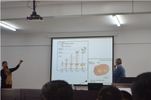 培訓會上,Harrie先生對馬鈴薯規(guī)范化種植管理的重要意義進行了深刻闡述,并就馬鈴薯各生長周期內易發(fā)、頻發(fā)的病蟲害及其防治措施與馬鈴薯種植、生產(chǎn)全程現(xiàn)代化管理等內容進行了講解,理論聯(lián)系實際,內容詳實全面,得到了參訓學員的廣泛認可。培訓全程為英語授課,為了使參訓學員能夠真正聽得懂、學得會,公司特聘內蒙古農(nóng)業(yè)大學農(nóng)學專業(yè)教授進行了全程翻譯。