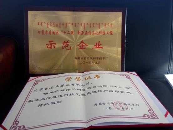 2014年11月21日,信息中心參加了內(nèi)蒙古自治區(qū)“十二五”制造業(yè)信息化科技工程推進(jìn)會(huì),會(huì)上,烏蘭察布市科技局宣布并為我公司頒發(fā)了由內(nèi)蒙古科技廳評(píng)選的“內(nèi)蒙古自治區(qū)“十二五”制造業(yè)信息化科技工程示范企業(yè)”牌匾和“制造業(yè)信息化科技工程先進(jìn)推廣應(yīng)用企業(yè)”榮譽(yù)證書。 此 次為第二批自治區(qū)“十二五”制造業(yè)信息化科技工程示范企業(yè)和全區(qū)制造業(yè)信息化科技工程先進(jìn)推廣應(yīng)用的評(píng)選,經(jīng)各盟市和包頭稀土高新區(qū)科技管理部門推薦、專 家網(wǎng)評(píng)打分和專家討論評(píng)審,全區(qū)共272家被評(píng)選上榜,其中烏蘭察布市示范企業(yè)和先進(jìn)推廣應(yīng)用企業(yè)共四家,我公司被評(píng)選上榜并榮獲表彰。 此次表彰及“制造業(yè)信息化科技工程示范企業(yè)”的揭牌,是對(duì)民豐薯業(yè)近年來(lái)信息工作所取得成果的充分肯定。同時(shí),對(duì)于公司未來(lái)信息化發(fā)展必將起到極大的推動(dòng)作用。