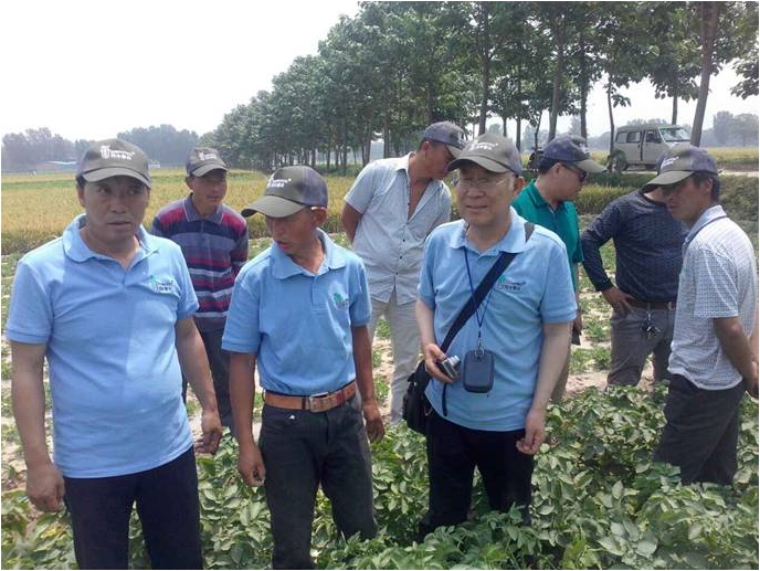 會場上,當(dāng)?shù)剞r(nóng)牧業(yè)局副局長、糧食局局長就此次觀摩會的開展做了重要講話。民豐種業(yè)副總經(jīng)理張文昌介紹了公司基本情況、2105年馬鈴薯行業(yè)發(fā)展?fàn)顩r及優(yōu)質(zhì)馬鈴薯種薯選擇等內(nèi)容;民豐種業(yè)質(zhì)量技術(shù)中心孟正平老師就馬鈴薯種植技術(shù)要點及病蟲害防治做了深入詳細(xì)的講解。隨后,于田間觀摩現(xiàn)場,孟老師與當(dāng)?shù)胤N植戶進行了現(xiàn)場互動及答疑,在此同時,我公司與當(dāng)?shù)胤止苻r(nóng)業(yè)領(lǐng)導(dǎo)就當(dāng)?shù)匚磥眈R鈴薯的發(fā)展與合作達(dá)成初步意向。